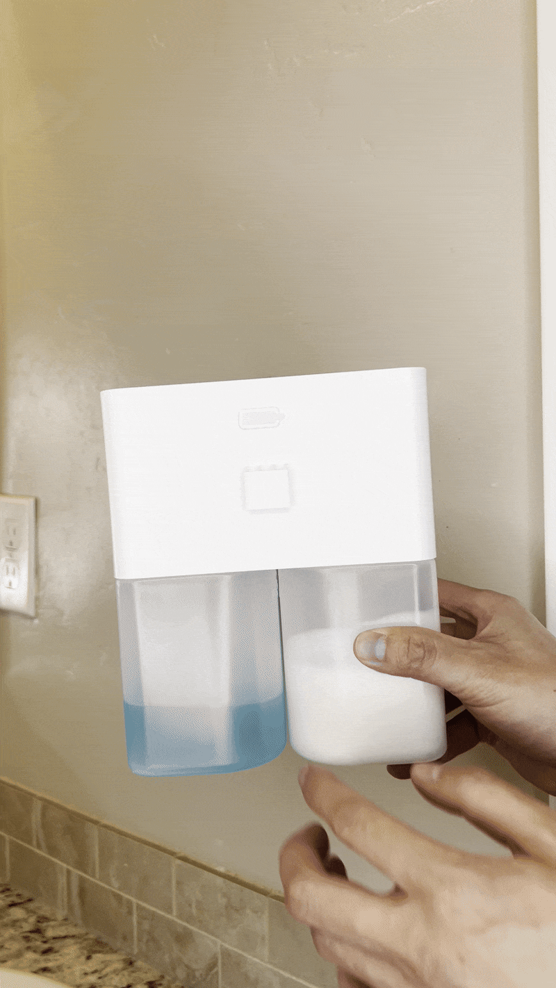 Hover your hand under the sensor and let the dual synchronized pumps dispense your cleanser and any other liquid skincare product you use most — no caps, no squeezing, no mess.